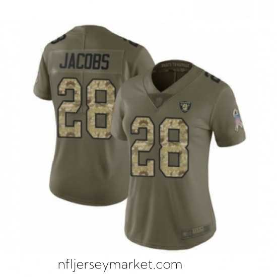 Alluring Womens Oakland Raiders 28 Josh Jacobs Limited Olive Camo 2017 Salute to Service Football Jersey For a limited time available for international delivery Order now and show off your team spirit!