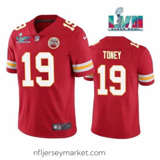 Irresistible Kansas City Chiefs 19 Kadarius Toney Red Super Bowl LVII Patch Vapor Untouchable Limited Stitched Football Jersey Act fast Only a few left for global shipment Secure yours today!